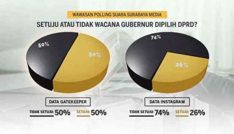 Dari data Gatekeeper Radio Suara Surabaya, 50 persen peserta polling tidak setuju jika pemilihan gubernur dilakukan oleh DPRD. Sedangkan 50 lainnya menyakan setuju.