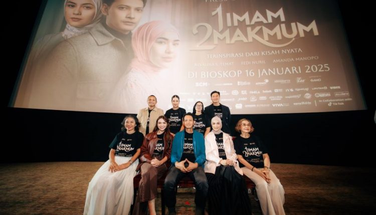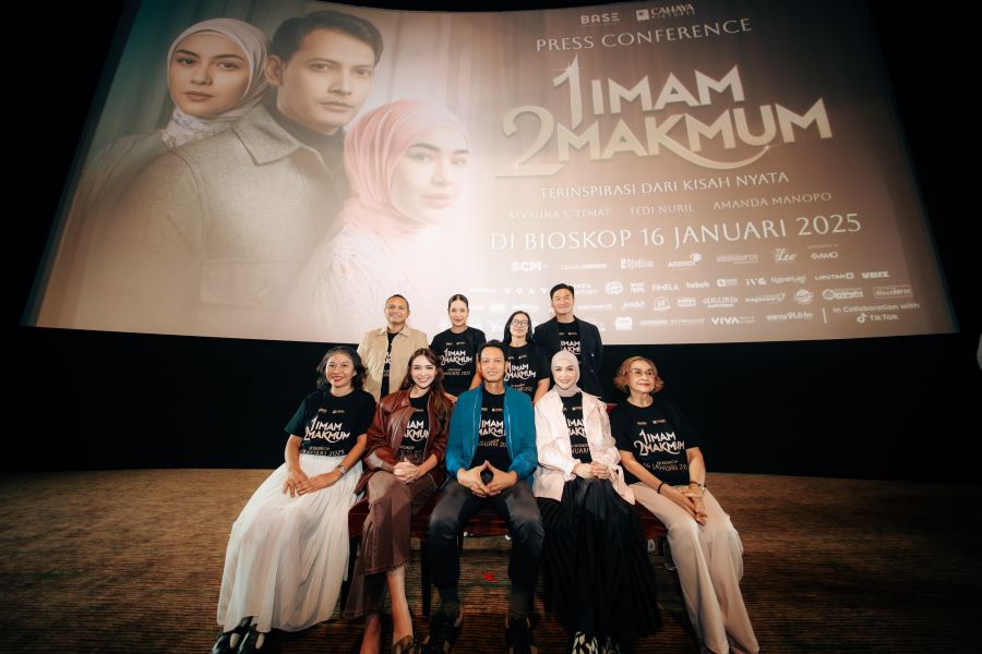 JAKARTA (IkkeLA): Base Entertainment dan Cahaya Pictures meluncurkan film 1 Imam 2 Makmum bertempat di Studio XXI Epicentrum Kuningan, Jakarta pada Kamis (9/1). Film 1 Imam 2 Makmum merupakan film drama menyentuh hati yang menggambarkan perjuangan cinta dan pengorbanan dalam pernikahan ini akan tayang serentak di seluruh bioskop tanah air pada 16 Januari 2025.