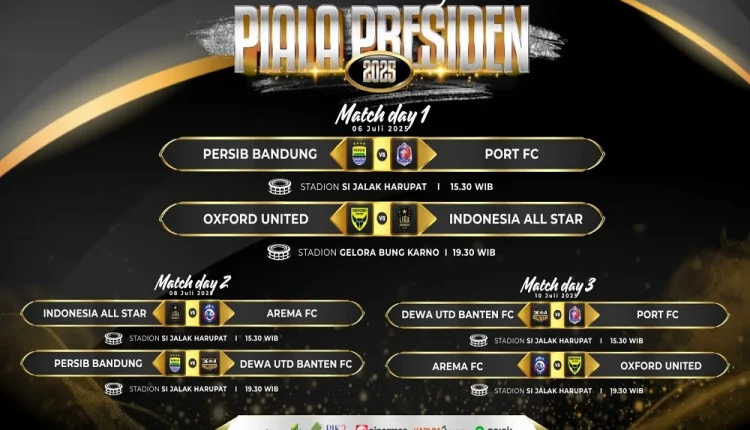 Jakarta IkkeLa32.com [30/06/2025] — Panitia pelaksana (OC) Piala Presiden 2025 resmi membuka penjualan tiket pertandingan Piala Presiden 2025 yang akan digelar pada 6-13 Juli 2025. Penjualan tiket Piala Presiden 2025 dilakukan secara online dengan harga Rp50.000 untuk semua tribun.