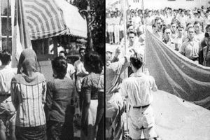 Kedua, ketika Letkon Raden Mas Latief Hendraningrat, Suhud Sastro Kusumo, dan Surastri Karma (SK) Trimurti mengibarkan sang saka bendera merah putih.