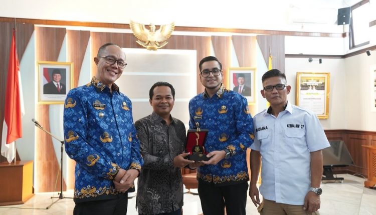 SUKABUMI IKKELA32.COM (17/9/2025) — Wali Kota Sukabumi H. Ayep Zaki bersama Wakil Wali Kota Bobby Maulana menyerahkan kadeudeuh (kasih sayang) kepada Teguh Prasetyo, putra terbaik Sukabumi yang berhasil meraih juara Kaligrafi Internasional di Qatar.
