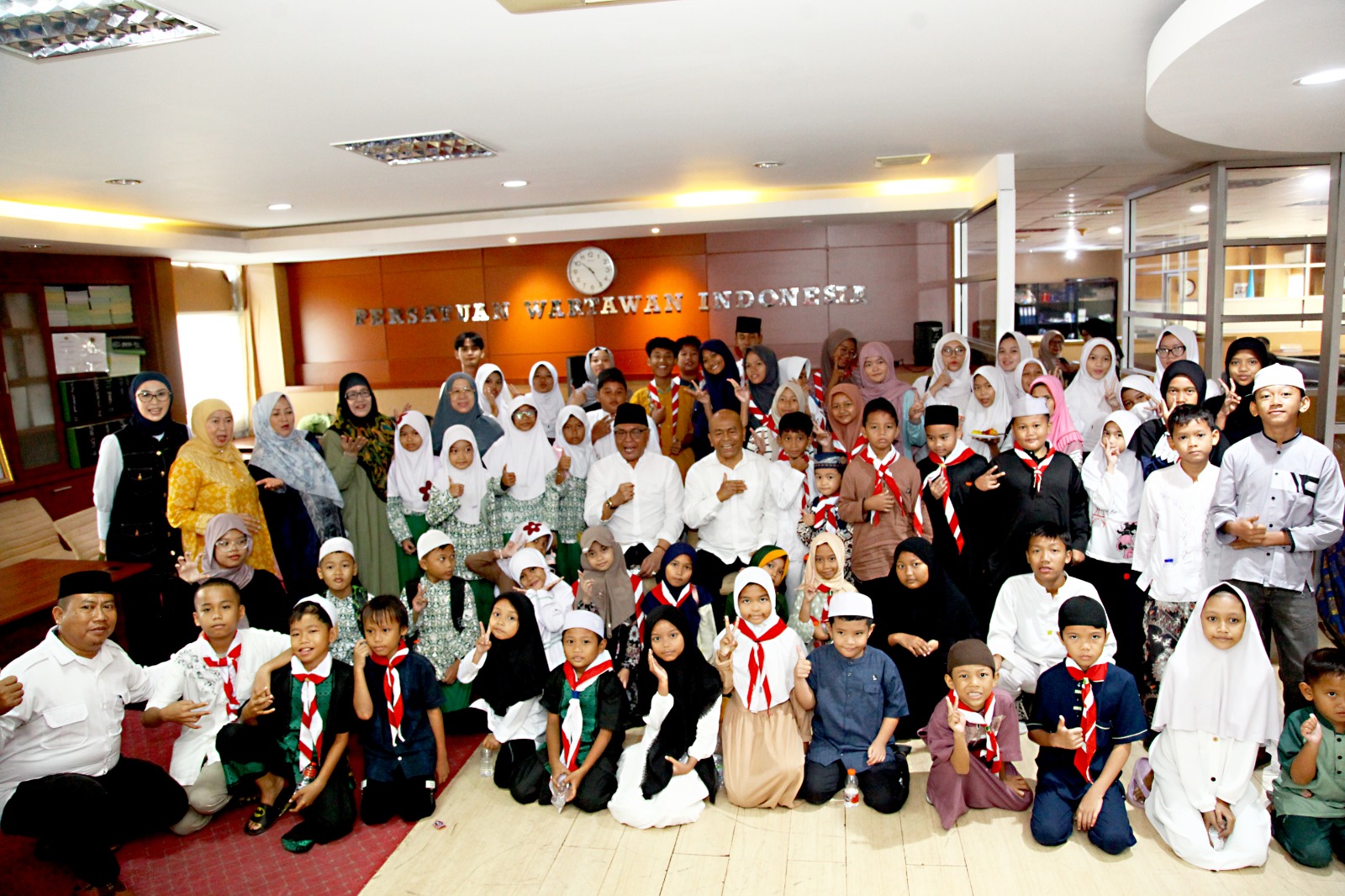 Sekitar pukul 09.30 wib sebanyak 72 anak yatim piatu dari Yayasan Al-Hikmah dan Yayasan Harun Ar-Rasyid yang didampingi para pembinanya telah memadati markas PWI Pusat.
