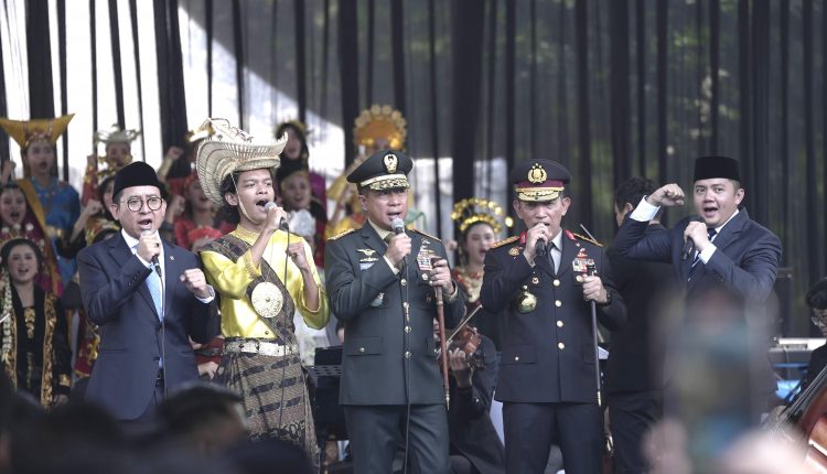 Menteri Kebudayaan, Fadli Zon, yang turut mendampingi Presiden Prabowo, ikut bergabung dan menyanyikan sejumlah lagu nasional bersama tim paduan suara. Didampingi oleh Panglima TNI, Jenderal Agus Subiyanto; Kepala Polisi RI, Listyo Sigit Prabowo; dan Sekretaris Kabinet, Teddy Indra Wijaya, Menbud Fadli membawakan lagu “Indonesia Pusaka” ciptaan Ismail Marzuki, “Tanah Airku” ciptaan Ibu Sud, “Bangun Pemudi Pemuda” ciptaan Alfred Simanjuntak, dan “Garuda Pancasila” ciptaan Prohar Sudharnoto. Momen kebersamaan ini disaksikan langsung oleh Presiden Prabowo, menambah suasana kian hangat dan penuh semangat persatuan.