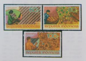 1️⃣ Seri prangko “Kebudayaan Indonesia” (9 Oktober 1973) dengan tiga nilai nominal yaitu Rp 60 (motif batik Parang Rusak), Rp 80 (motif batik Pagi Sore), dan Rp 100 (motif batik Merak Ngigel).