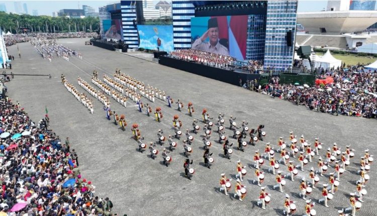 Rangkaian acara kemudian dilanjutkan dengan defile alutsista TNI, menampilkan 1.047 peralatan pertahanan modern mulai dari kendaraan taktis, artileri medan dan udara, drone, hingga kapal selam tanpa awak. Atraksi udara pesawat F-16 menjadi penutup yang spektakuler, menggetarkan langit Monas dan menegaskan kesiapan TNI menjaga kedaulatan Indonesia.