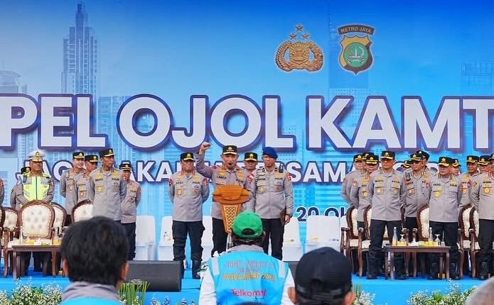 Jakarta IkkeLa32.com (21/10/2025) – Kapolri Jenderal Listyo Sigit Prabowo mengajak komunitas ojek online (ojol) untuk bersinergi menjaga keamanan dan ketertiban masyarakat. Ajakan itu disampaikan saat memimpin Apel Ojol Kamtibmas di kawasan Monas, Jakarta Pusat, Senin (20/10/2025).