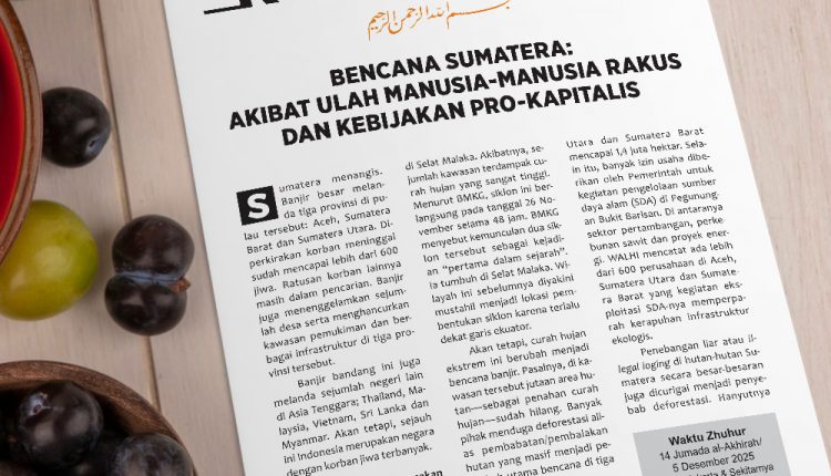 Maka dari itu, bencana yang hari ini menimpa penduduk Sumatera bukan semata karena fenomena alam, tetapi merupakan buah kebijakan kapitalistik yang keji. Keputusan yang diambil hanya semata-mata demi keuntungan sembari mengabaikan dampak kerusakan alam dan bencana yang menimpa masyarakat. Inilah kemungkaran besar yang menciptakan kezaliman kepada rakyat.