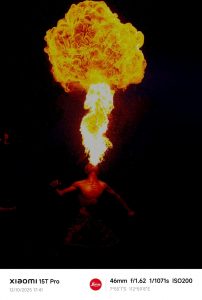 Cahaya obor dan api menjadi sumber highlight yang tidak stabil, namun kamera berhasil mempertahankan gradasi lembut, tanpa highlight yang berlebihan. Ekspresi pembohong khas Bujang Ganong, putaran kepala, hentakan kaki, hingga momen-momen dramatis ketika penari melompat, tetap terekam tajam berkat Optical Image Stabilization (OIS) dan pemrosesan gambar Leica yang mampu mengunci gerakan subjek dengan stabil.