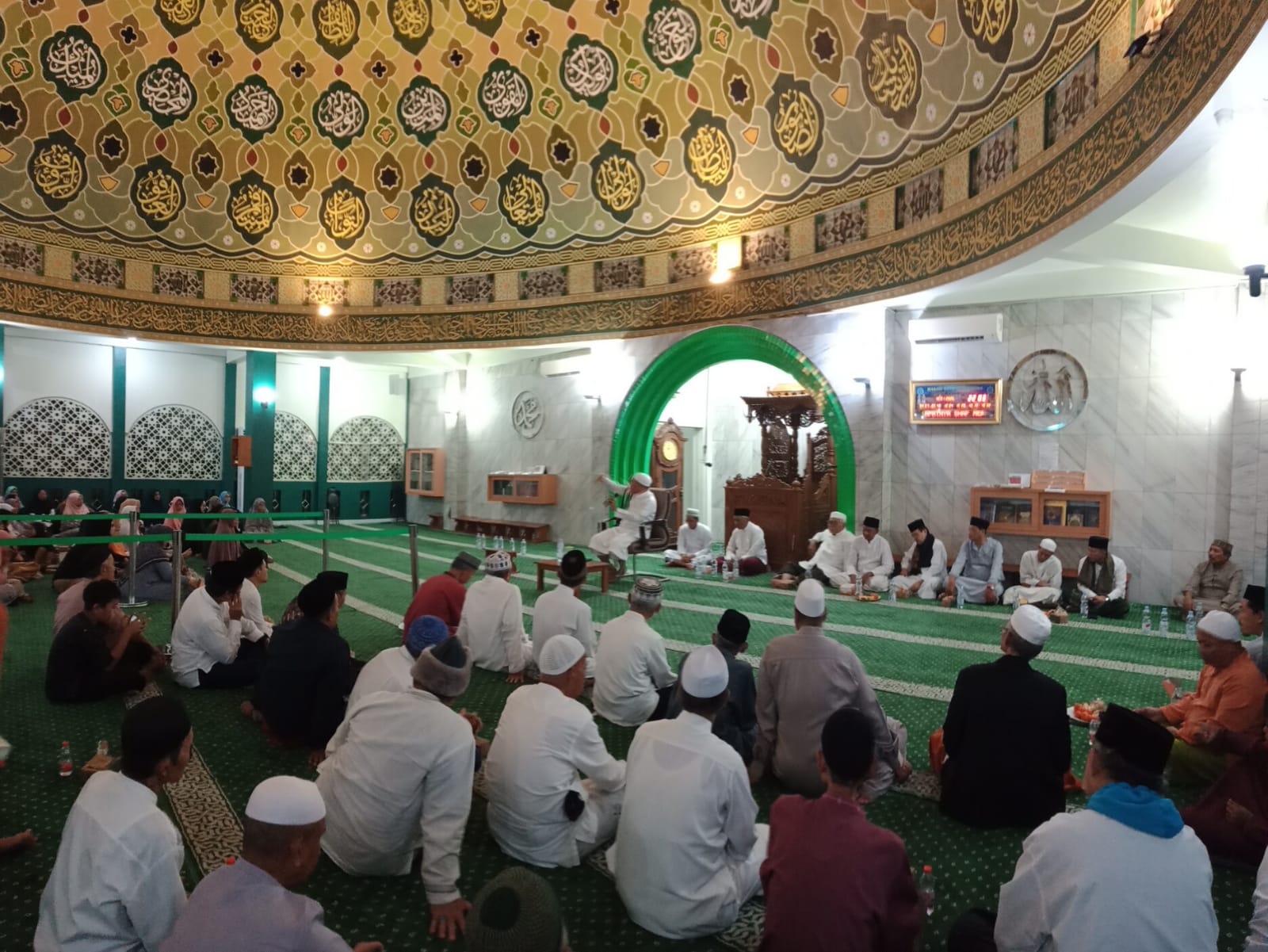 Dipimpin langsung Ketua DKM Masjid Raya Nurul Huda dan Ustadz Abdulah sampai menjelang Isya. Tampak Jamaah Sholat Maghrib dengan semangat bertawasul.